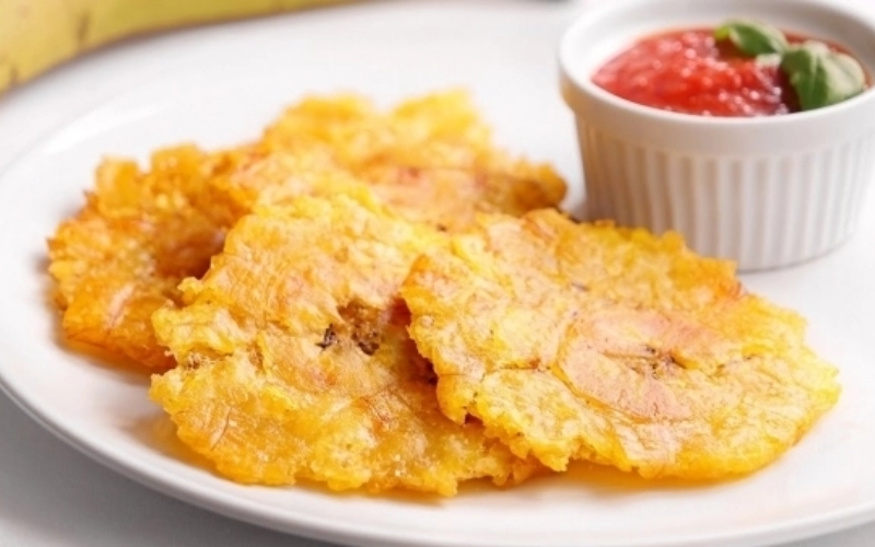 Patacones, or twice-fried plantains, are a popular snack or side dish in Panama. The process involves frying green plantain slices, smashing them flat, and then frying them until crispy. They are commonly served with various dips or as a side with main dishes. For crispy and delicious patacones, Tostones y Más is the go-to spot, offering perfectly fried plantains that are both crispy and flavorful.